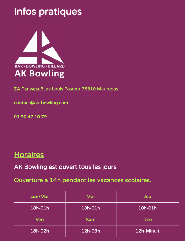 Point information de votre AK BOWLING MAUREPAS